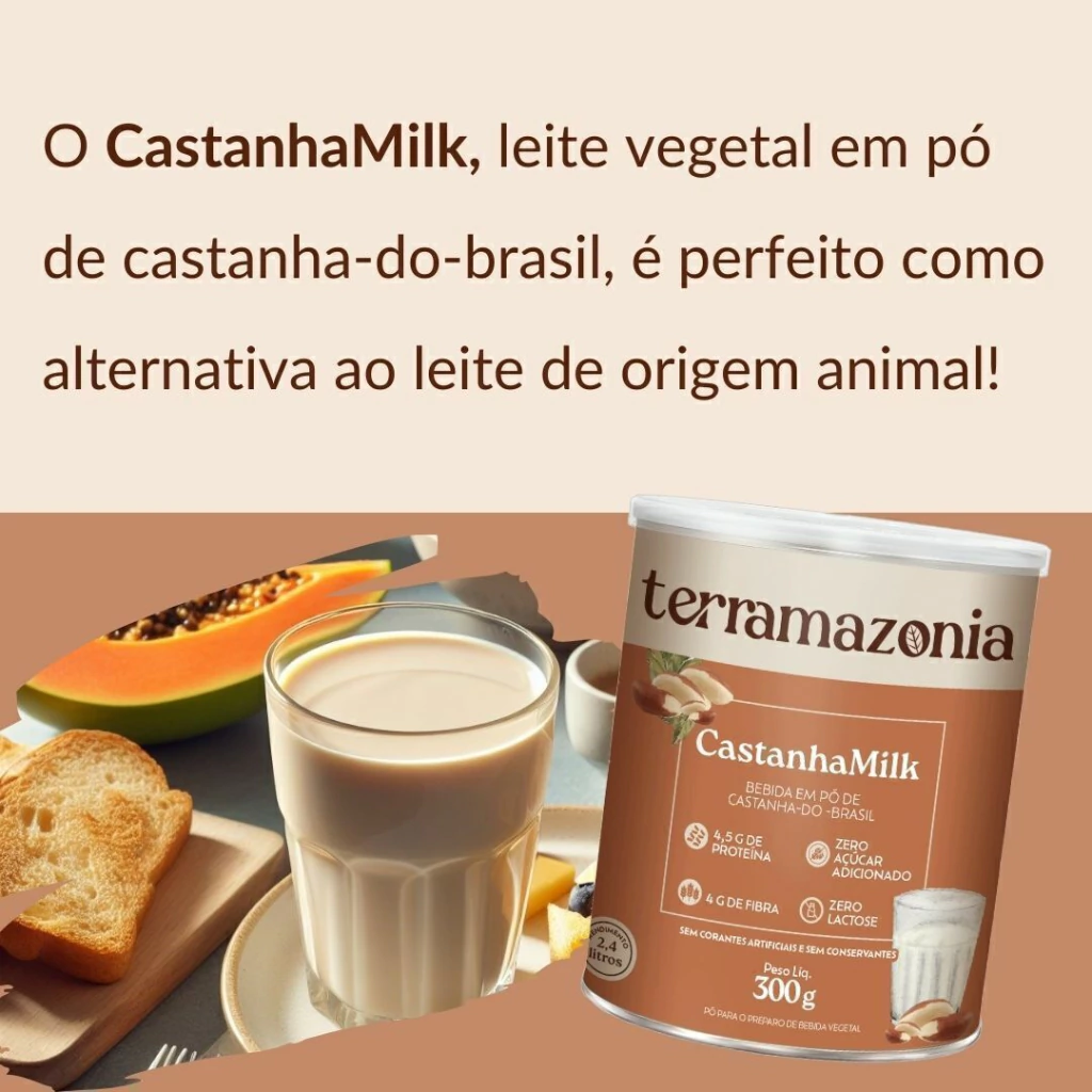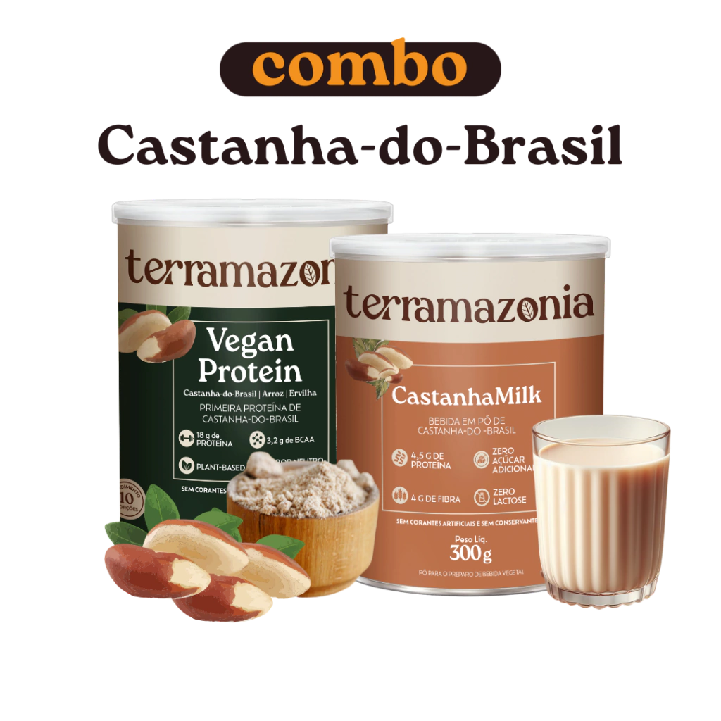 Imagine começar o dia com o sabor suave e cremoso da castanha-do-Brasil: o CastanhaMilk traz toda nutrição de proteínas, fibras, gorduras saudáveis e selênio da floresta, servindo como leite vegetal ou base para receitas doces e salgadas. Combine isso ao longo do dia com a Vegan Protein, uma proteína vegetal à base de castanha-do-Brasil, arroz e ervilha — que entrega 18 g de proteína por dose e um perfil completo de aminoácidos para sustentar corpo e mente. Juntos, formam um ritual de nutrição que celebra a biodiversidade amazônica e dá energia para você viver intensamente.